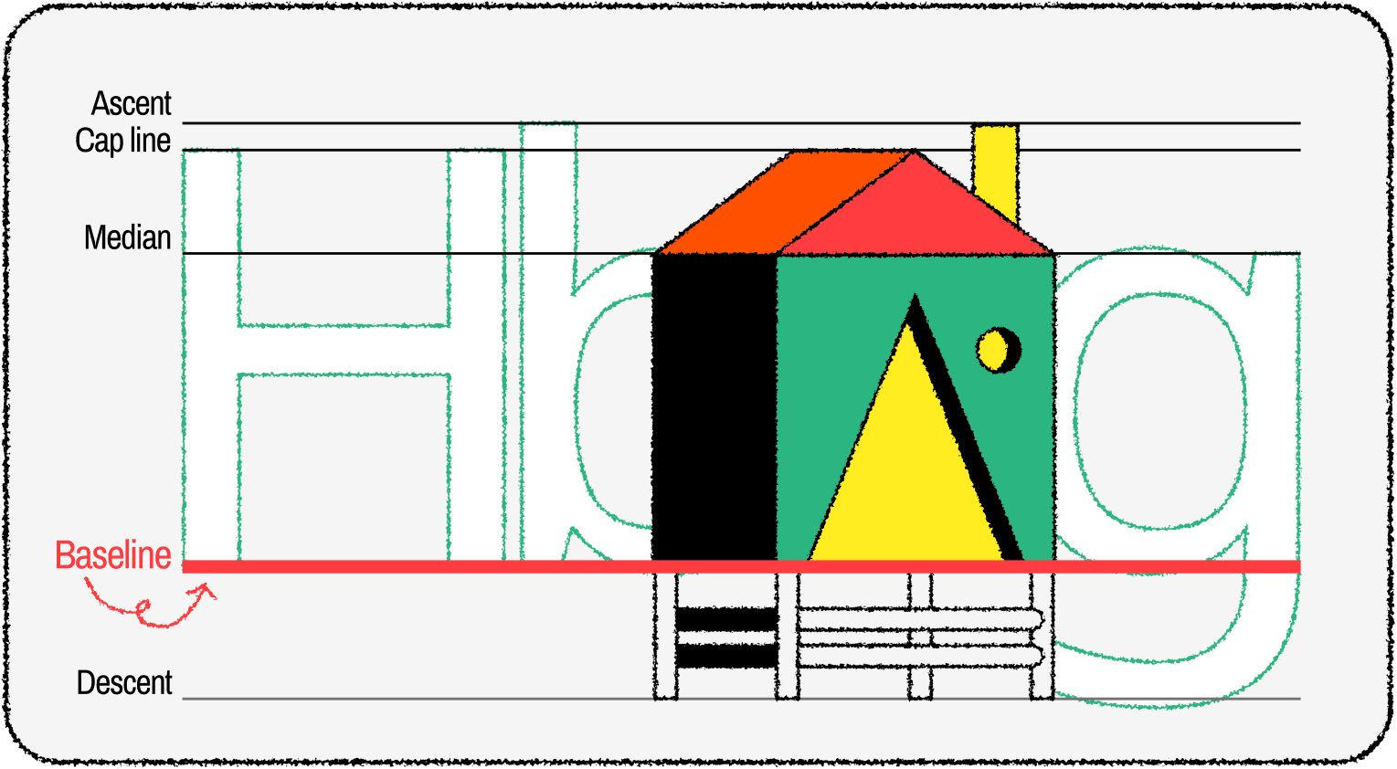 Baseline được xem là đường tham chiếu cơ bản nhất, cùng với các đường “median”, “cap-line”, “ascent”, “descent" góp phần kiểm soát vị trí và tỉ lệ của các ký tự trong bộ thiết kế chữ.