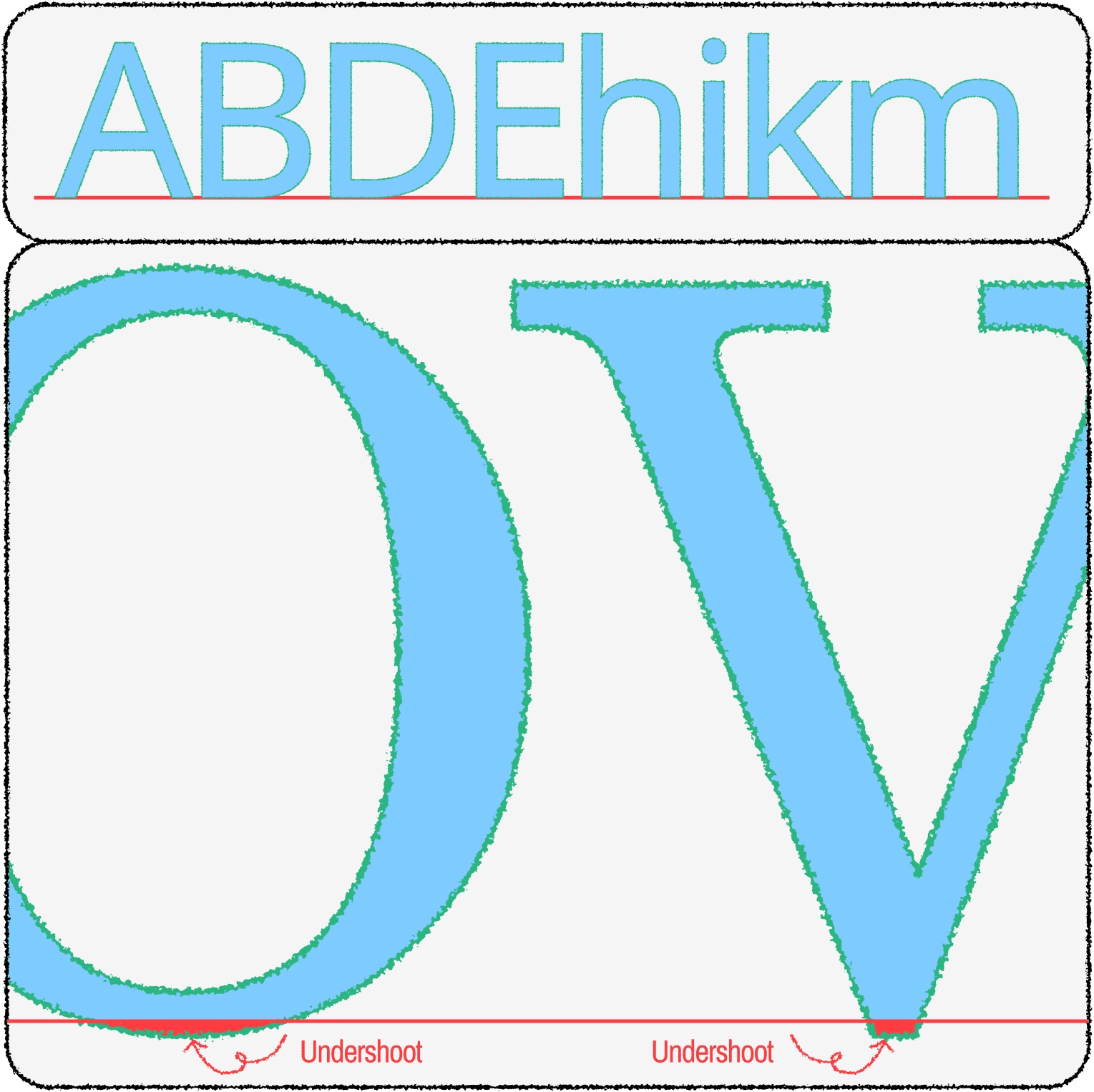 Baseline nằm ở vị trí điểm thấp nhất của hầu hết các chữ cái, đặc biệt là các chữ cái có phần dưới chữ ở dạng bằng.