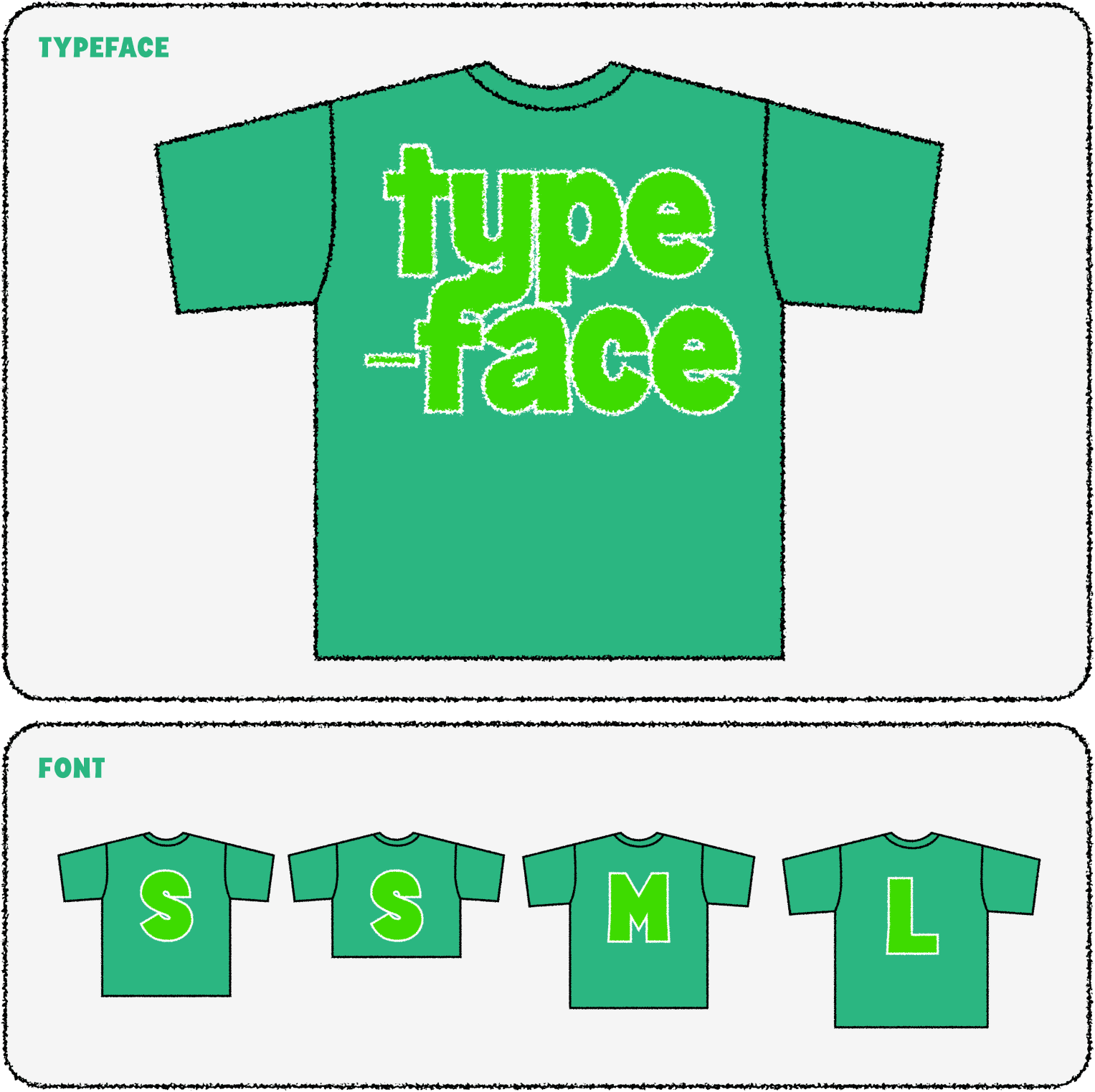 Ngày nay, hai khái niệm “font" và “typeface" thường được sử dụng trộn lẫn với nhau, nhưng ta có thể hiểu một cách đơn giản: “typeface” là thiết kế của họ chữ, còn “font" là biến thể của typeface với kích thước và trọng lượng chữ cụ thể.
